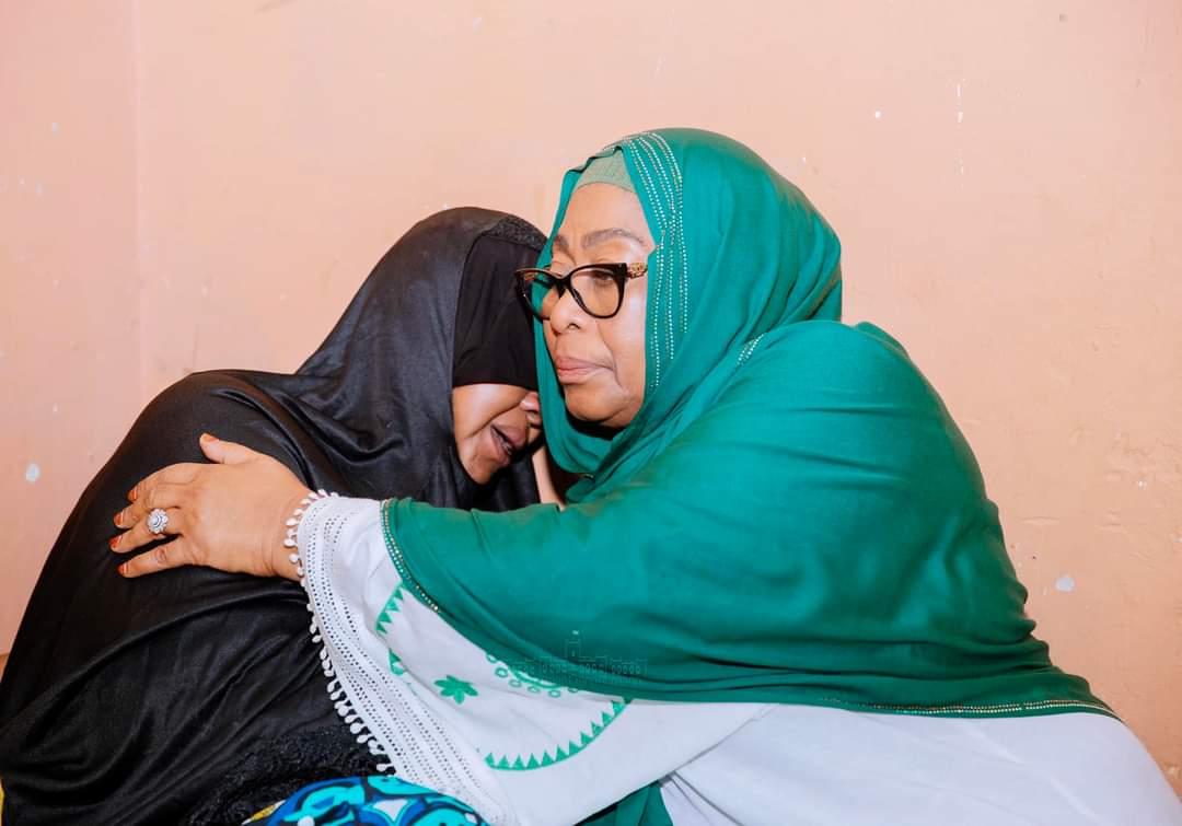 The President of the United Republic of Tanzania Dr. Samia Suluhu Hassan consoles and prays with the family of Mrs. Mwanakheri Mussa Yussuf, widow of the late Elder Mussa Abdulrahman,