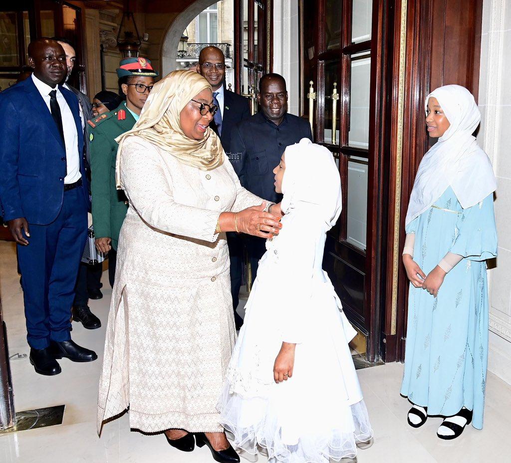 The President of the United Republic of Tanzania, Hon. Samia Suluhu Hassan, engaged in a conversation with the child Khaira Ali Jabir shortly