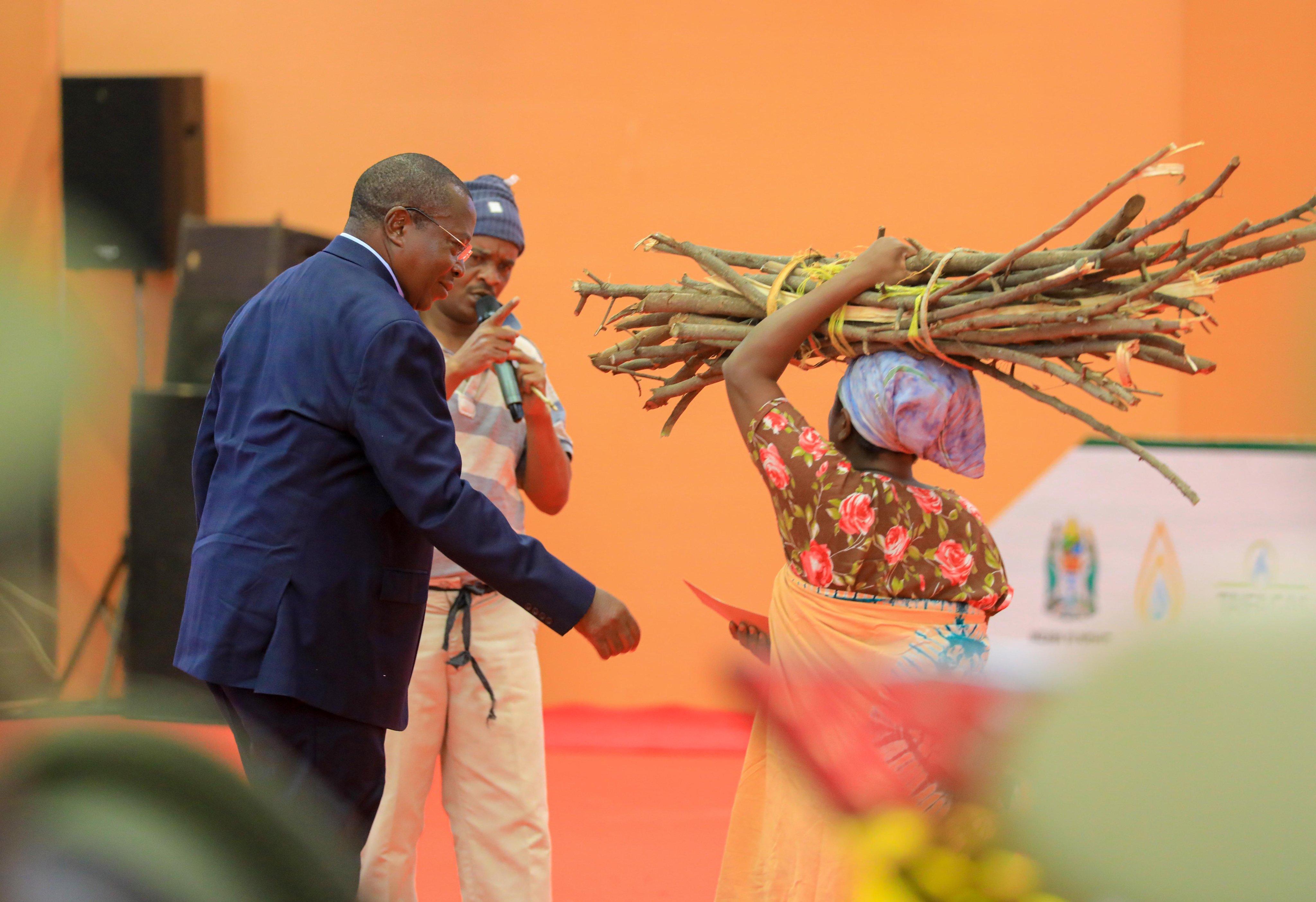 At the Jakaya Kikwete Conference Hall in Dodoma Region, after a special drama on gender violence and cutting down trees for cooking.
